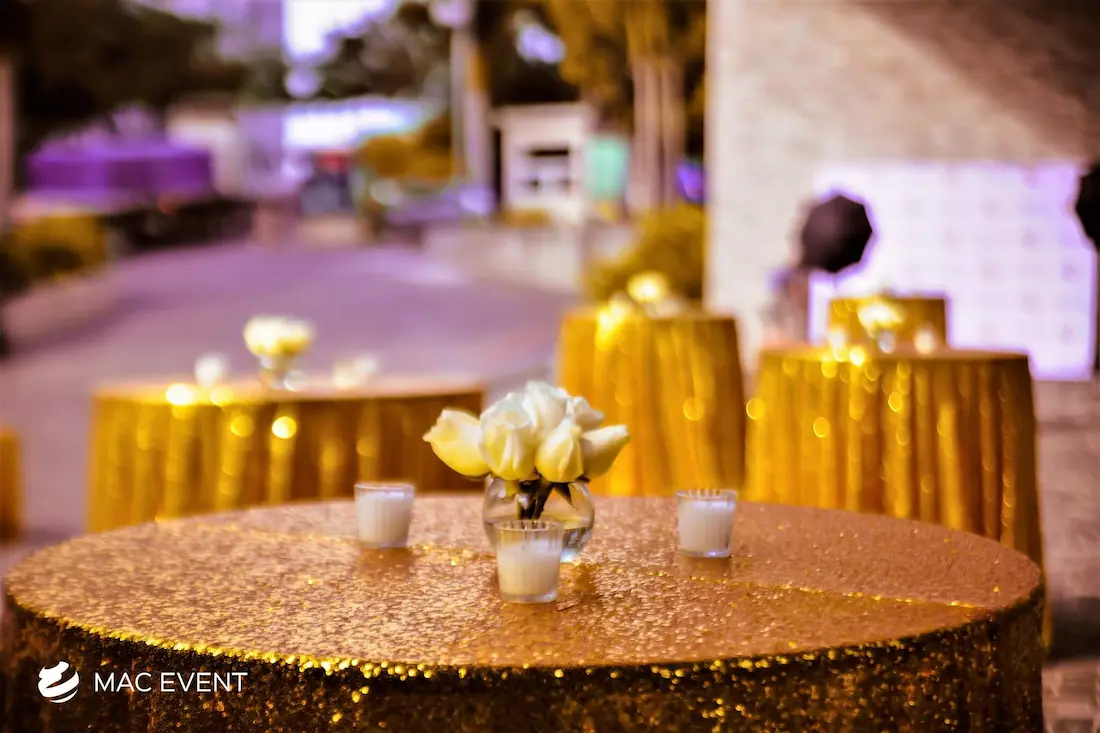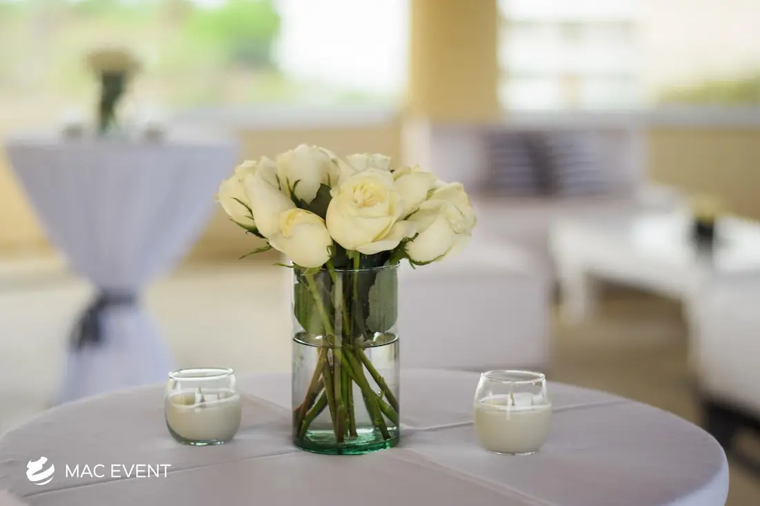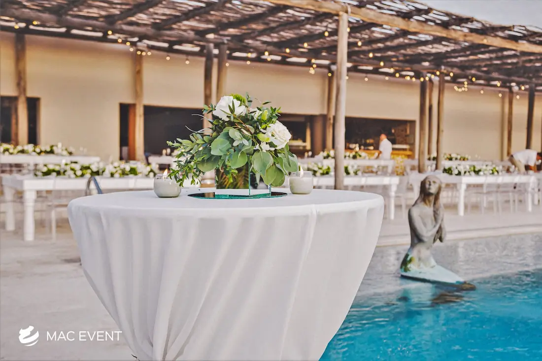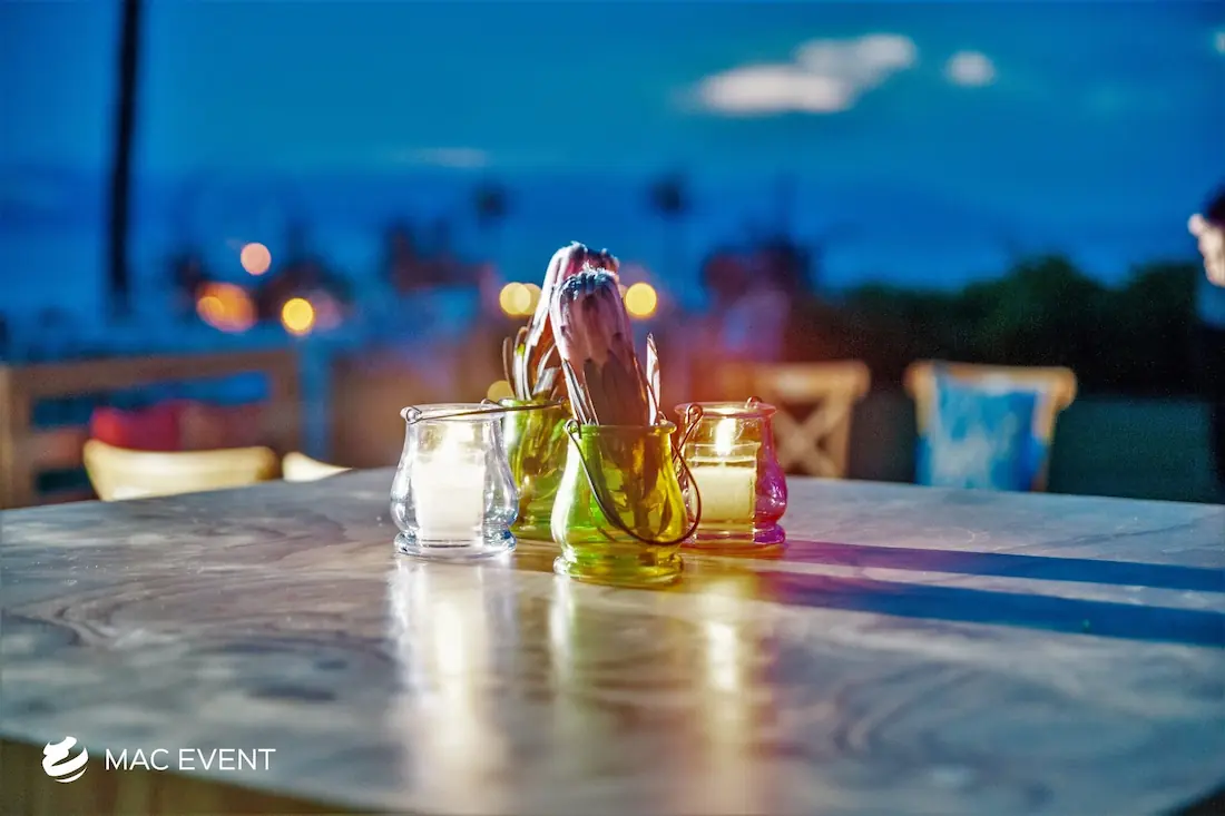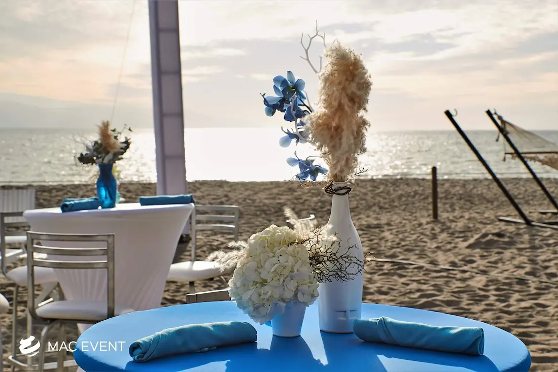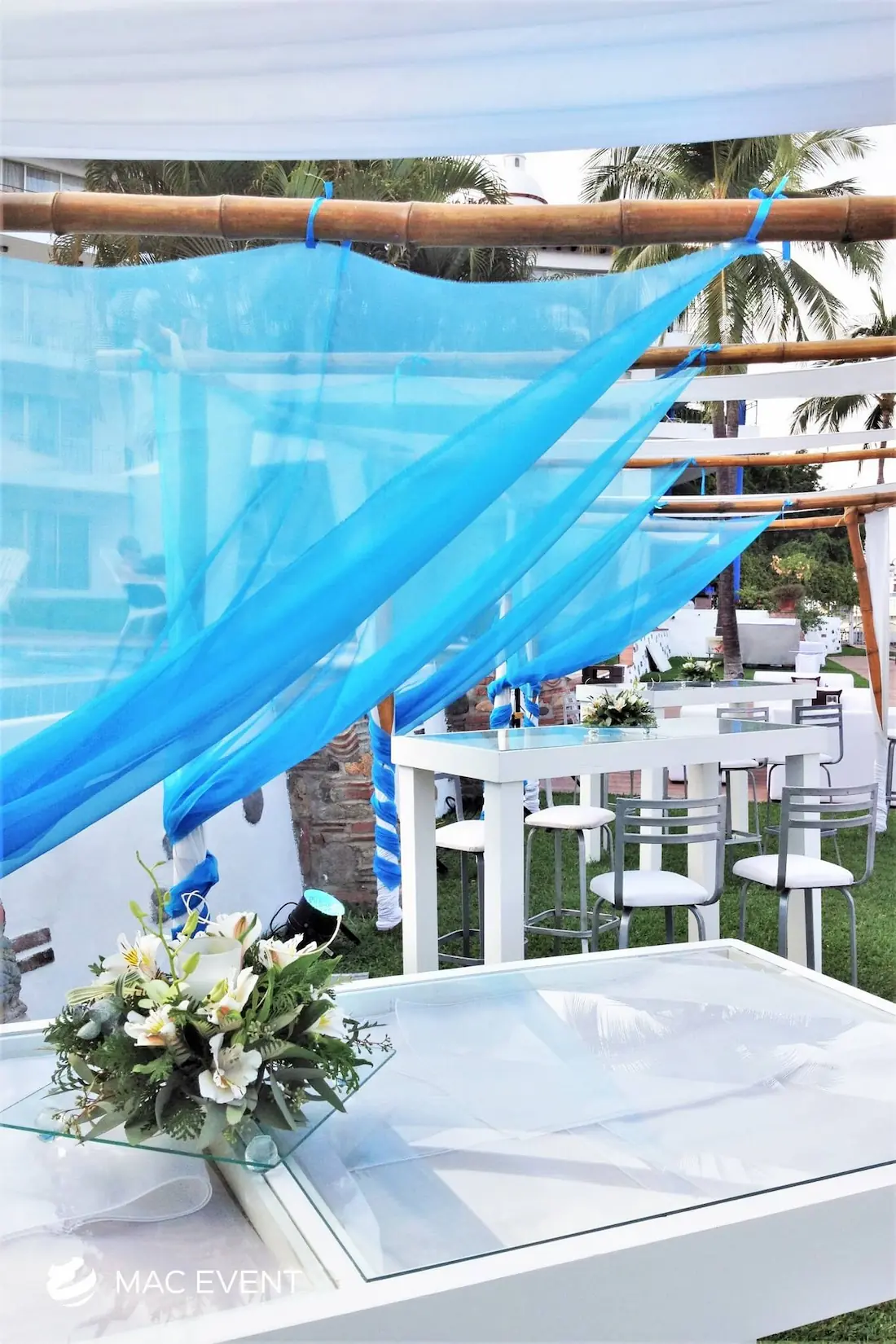 The cocktail table centerpiece adds a touch of elegance and charm to weddings, parties, and corporate events in Mazatlan. Designed for smaller tables, this event décor rental enhances cocktail areas and lounge spaces with subtle yet impactful style. Whether featuring fresh flowers, candles, or minimalist accents, the cocktail table centerpiece helps create a cohesive and inviting atmosphere. Renting cocktail table centerpieces in Mazatlan ensures a polished and consistent look that complements your overall event décor. For a refined and modern finishing detail, this centerpiece is the perfect accent for any celebration.