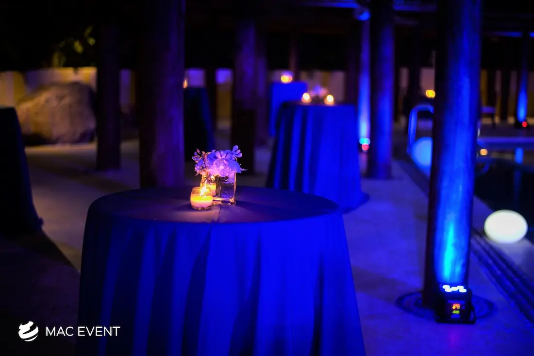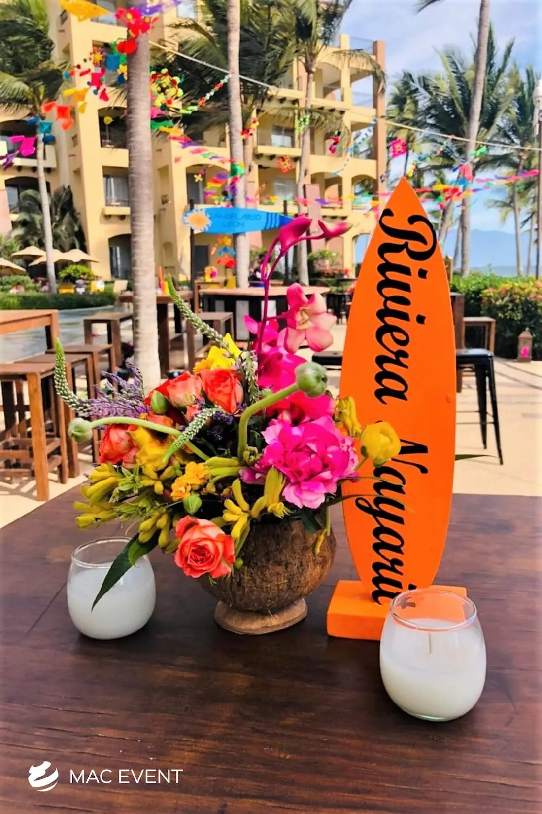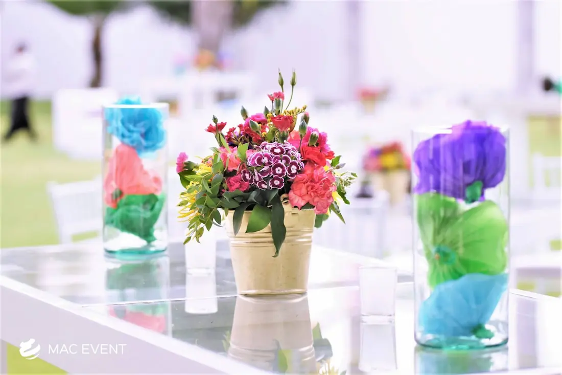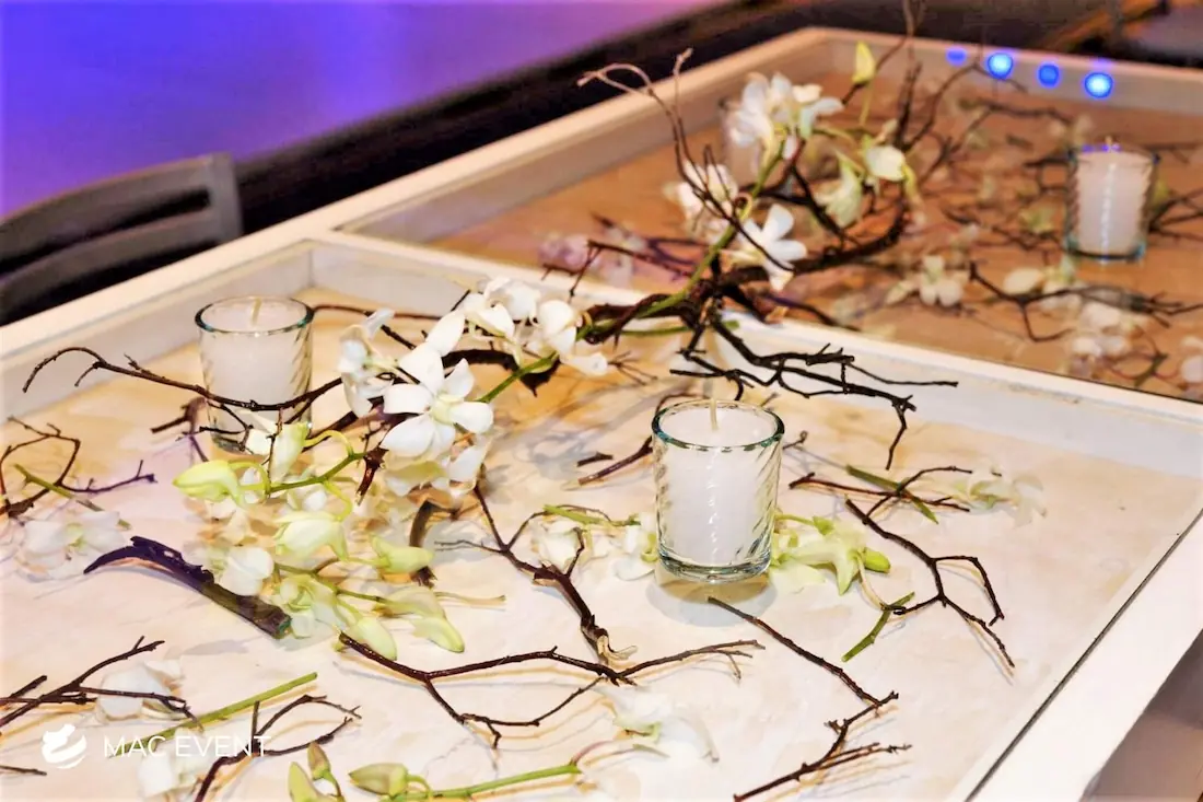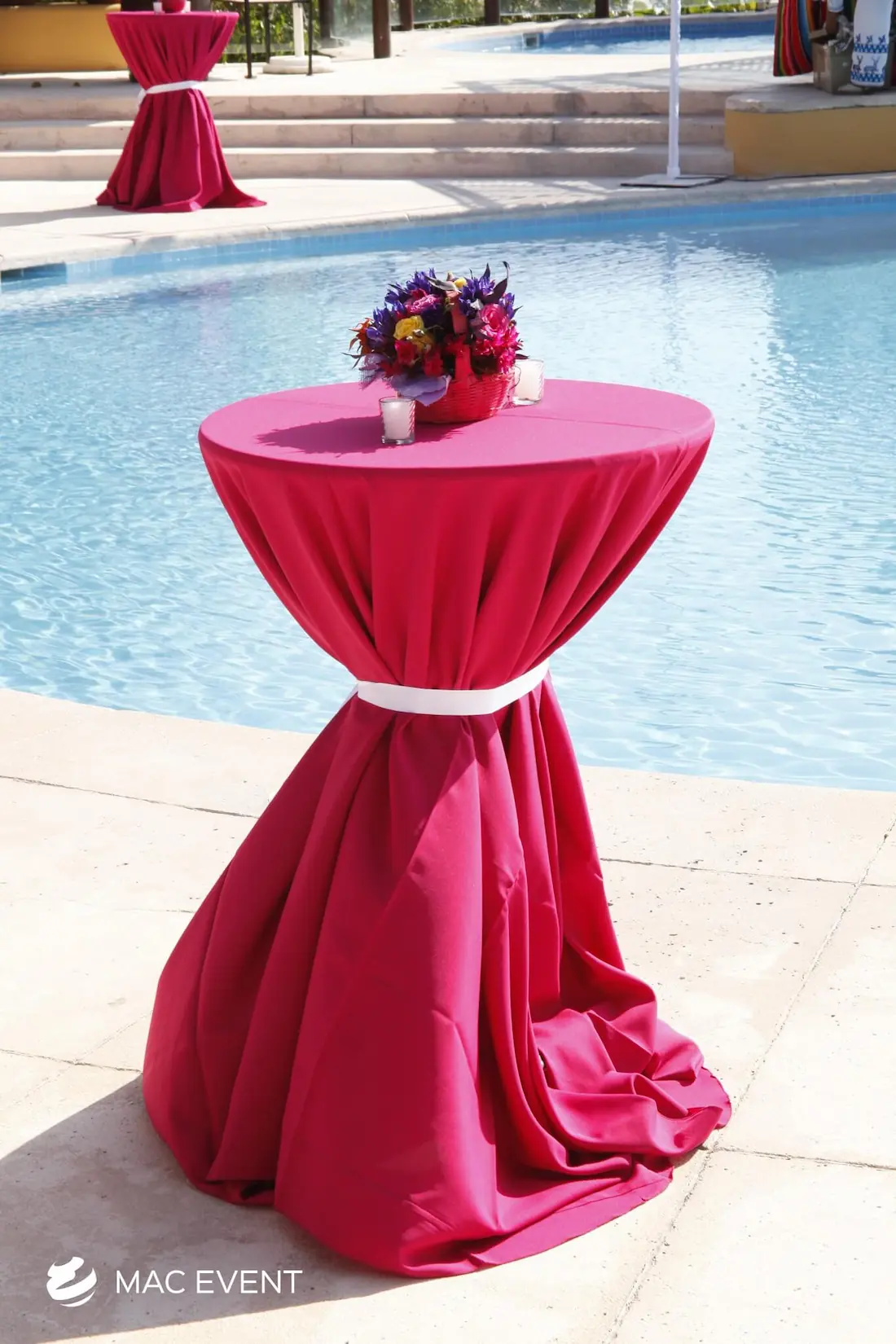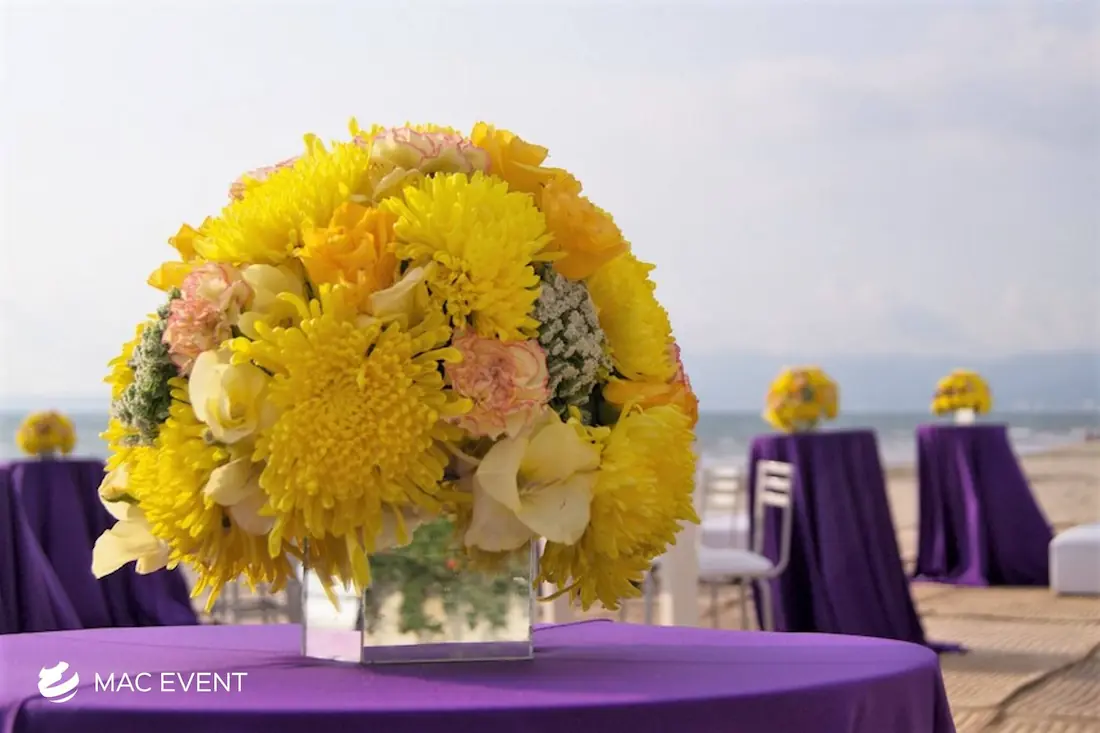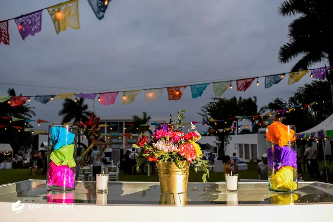 The cocktail table centerpiece adds a touch of elegance and charm to weddings, parties, and corporate events in Mazatlan. Designed for smaller tables, this event décor rental enhances cocktail areas and lounge spaces with subtle yet impactful style. Whether featuring fresh flowers, candles, or minimalist accents, the cocktail table centerpiece helps create a cohesive and inviting atmosphere. Renting cocktail table centerpieces in Mazatlan ensures a polished and consistent look that complements your overall event décor. For a refined and modern finishing detail, this centerpiece is the perfect accent for any celebration.