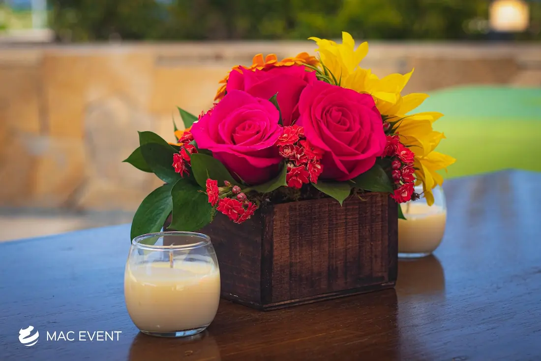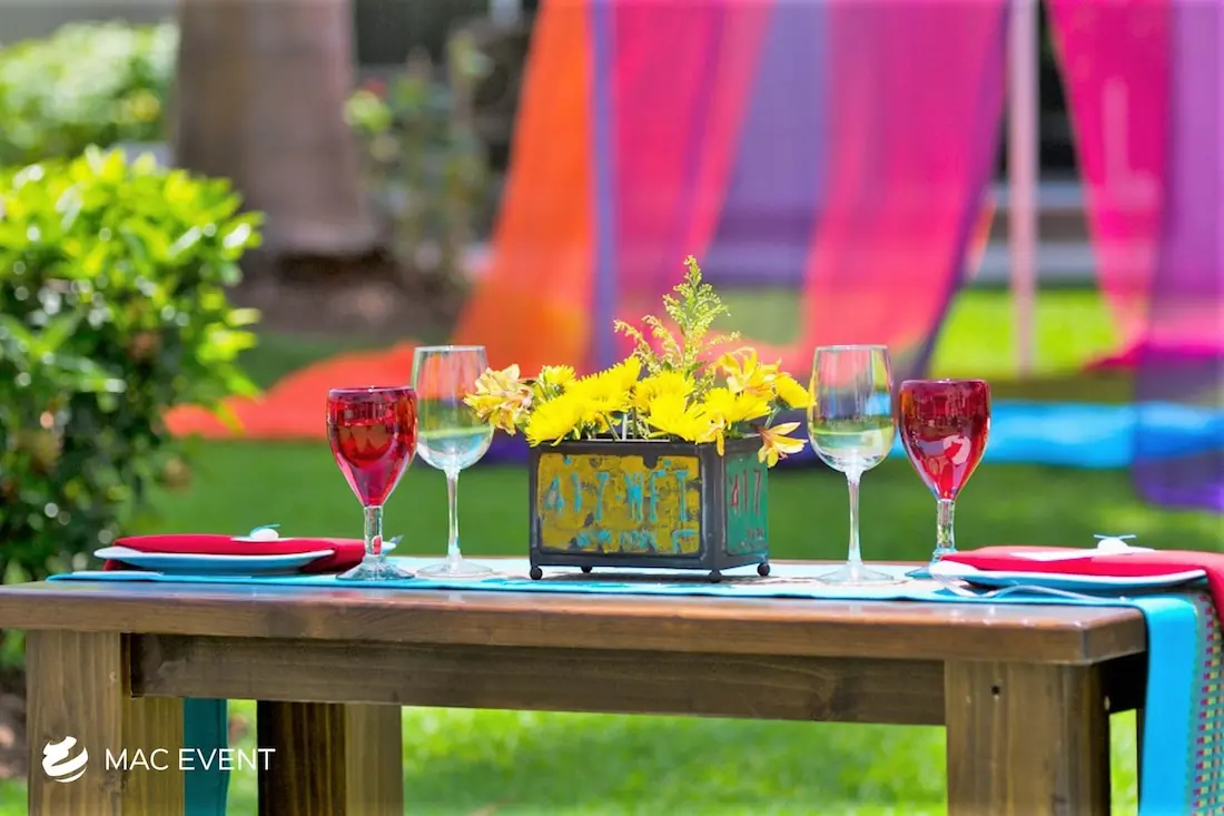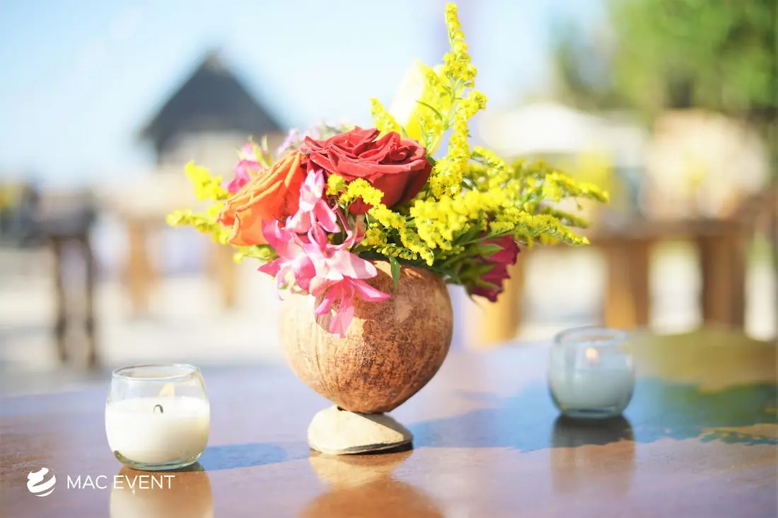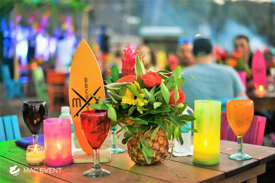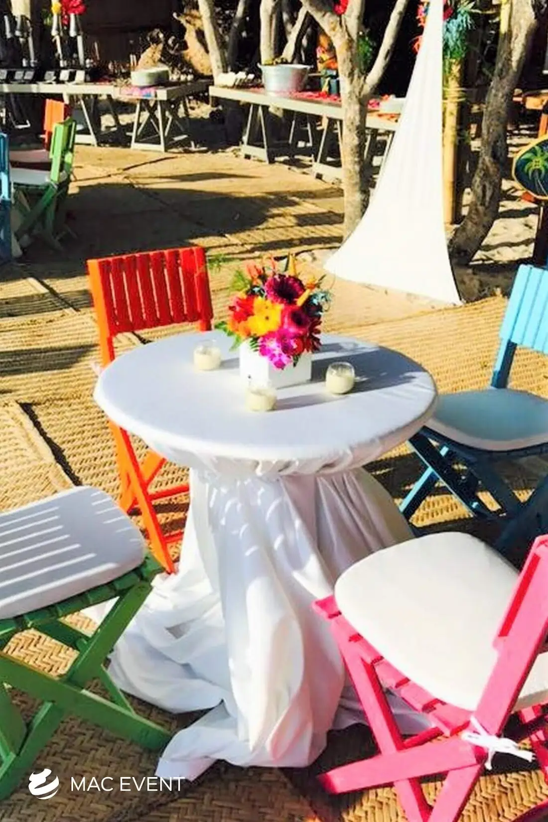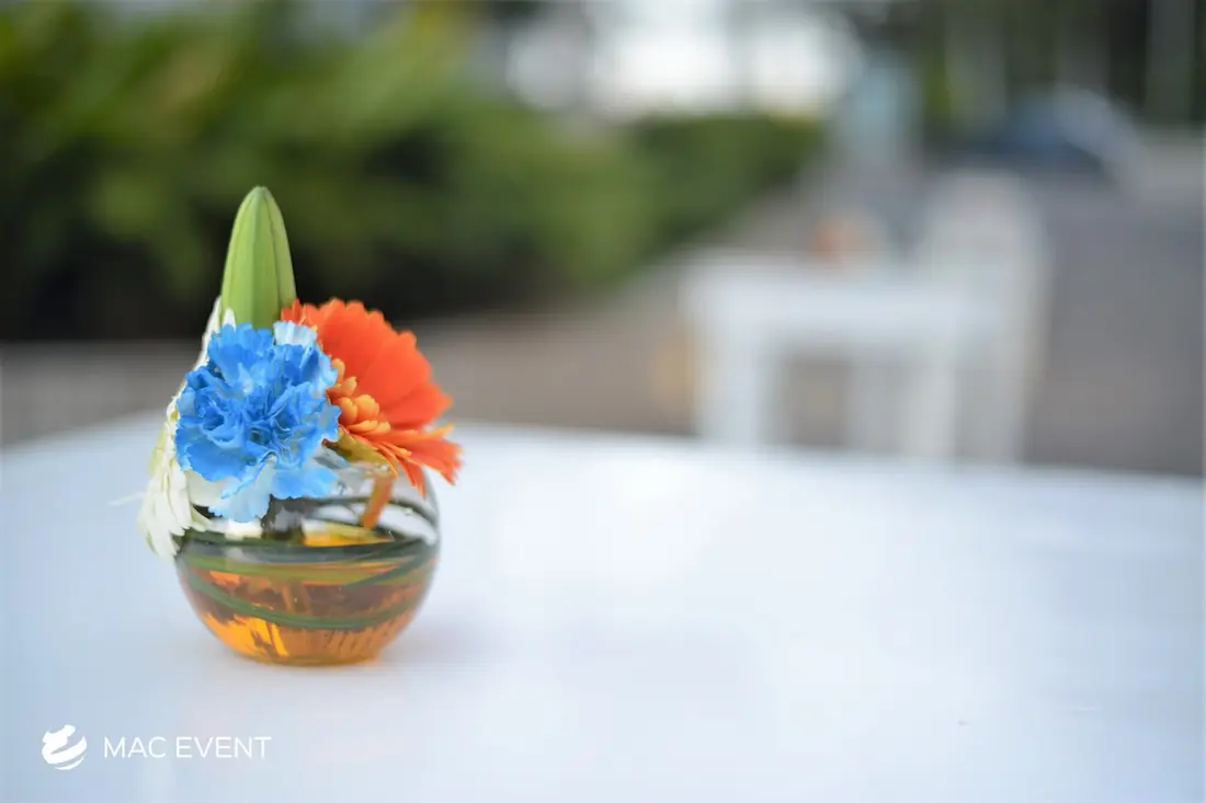 The cocktail table centerpiece adds a touch of elegance and charm to weddings, parties, and corporate events in Mazatlan. Designed for smaller tables, this event décor rental enhances cocktail areas and lounge spaces with subtle yet impactful style. Whether featuring fresh flowers, candles, or minimalist accents, the cocktail table centerpiece helps create a cohesive and inviting atmosphere. Renting cocktail table centerpieces in Mazatlan ensures a polished and consistent look that complements your overall event décor. For a refined and modern finishing detail, this centerpiece is the perfect accent for any celebration.