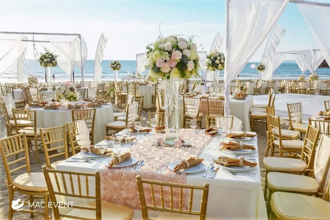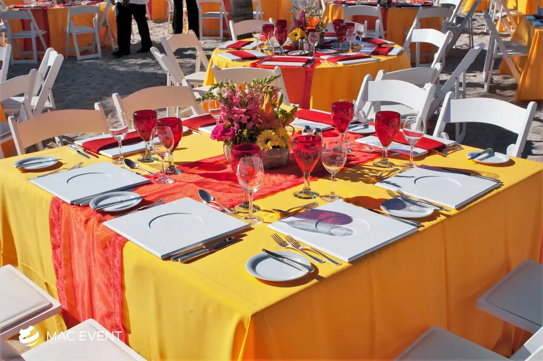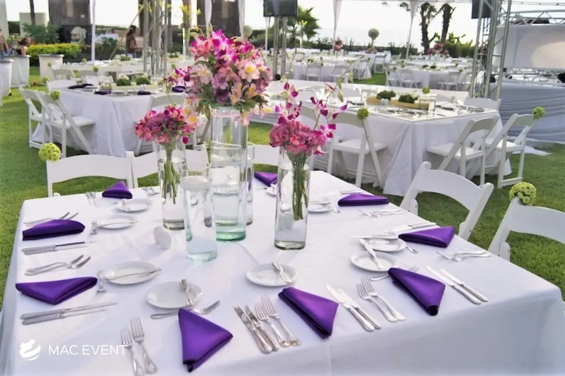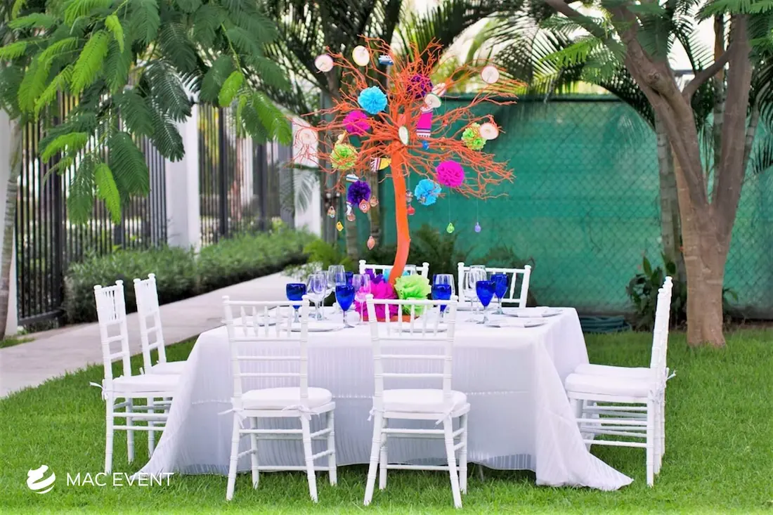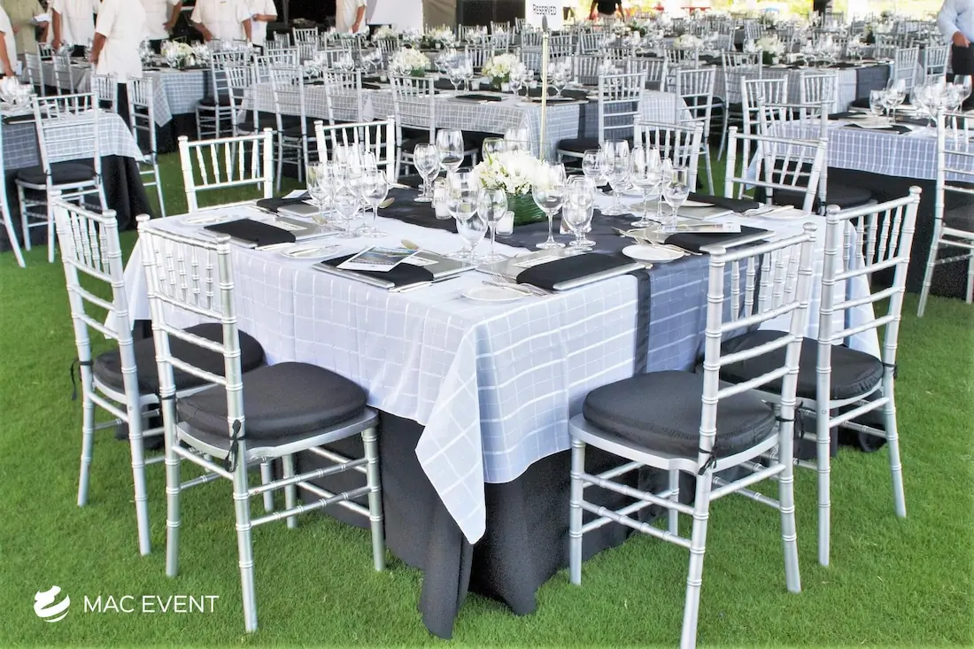 The square table offers a modern and balanced look for weddings, private parties, and corporate events in Mazatlan. Its clean lines and symmetrical shape make it ideal for intimate seating arrangements and stylish dining setups. This event table rental brings a contemporary touch to any décor while maintaining practicality and comfort for guests. Renting square tables in Mazatlan allows you to create a unique layout that stands out from traditional designs, blending elegance with functionality. For a sophisticated and well-organized event space, the square table is a perfect choice.